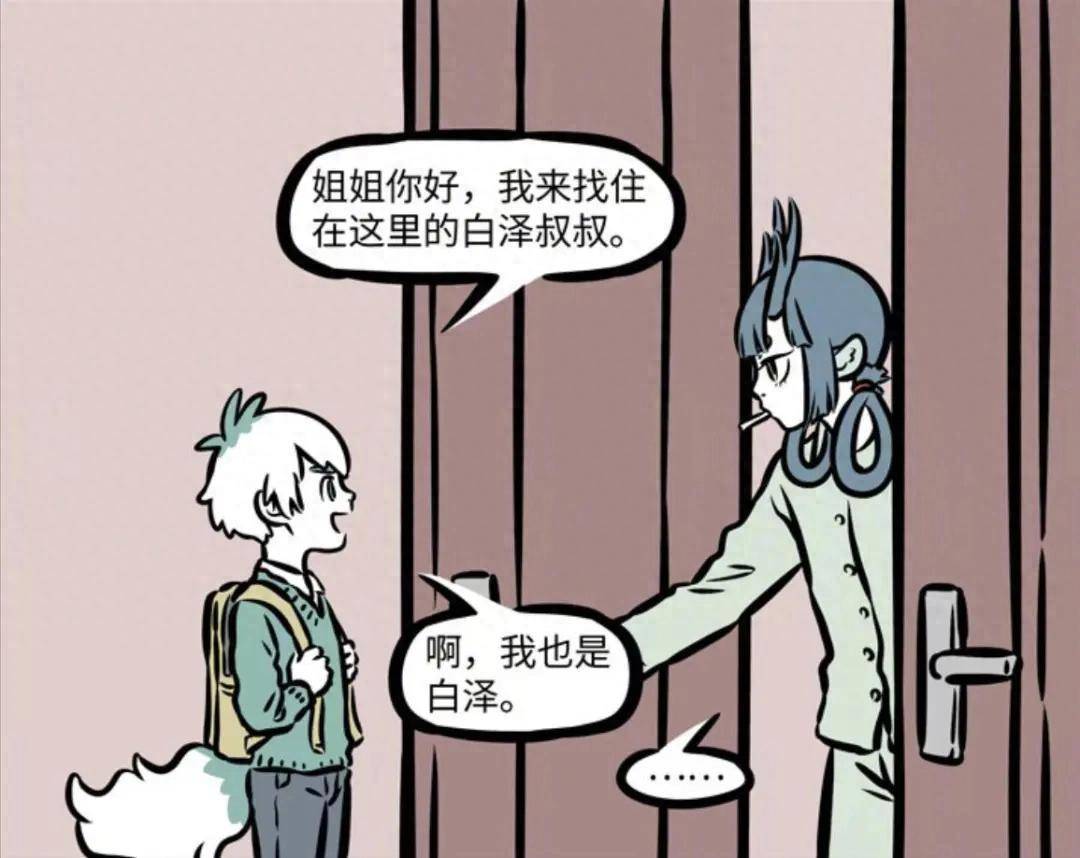 开门后的龙女看到一位背着黄色小书包的男孩,这位男孩十分有礼貌表示自己来这里是想要找白泽叔叔,随后便开始自我介绍,表示自己也是白泽