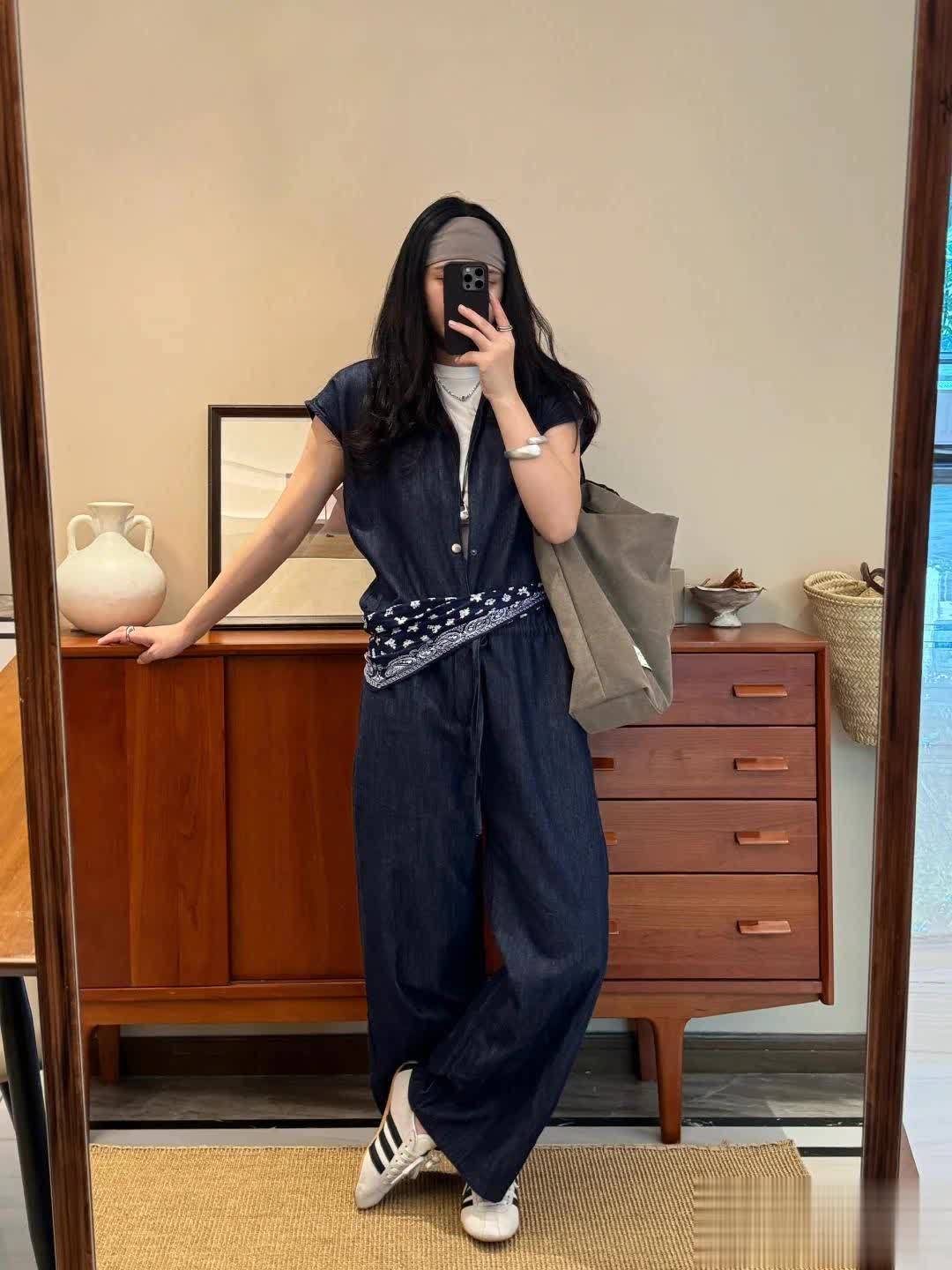 连体裤有个好处就是一穿就是一套,每天不用苦恼如何搭配。